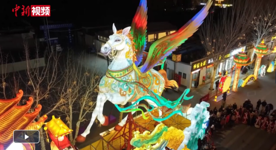 甘肃敦煌:千余盏特色花灯点亮夜空 丝路光影盛宴迎新年