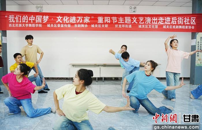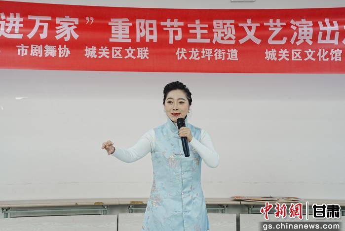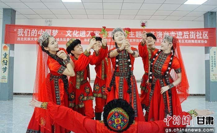 中新网甘肃新闻10月28日电 重阳节将至,由兰州市城关区委宣传部、兰州市剧舞协、城关区文联、城关区文化馆、城关区戏剧舞蹈家协会、伏龙坪街道后街社区携手西北民族大学舞蹈学院开展重阳节主题文艺汇演活动,来自后街社区的老年人在家门口欣赏了一场高雅的艺术盛宴。
