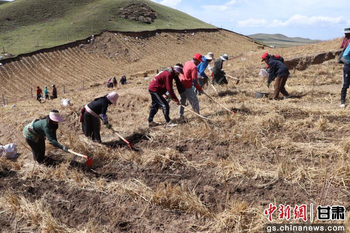 成绩的背后,是因地制宜的科学施策。面对不同程度、不同地形的沙化问题,玛曲政府科学规划,高效协调,扎实推进。在甘肃省地矿局第三勘查院的技术支撑下,精准的治理方案得以落地。在黄河阶地的重度沙化区,他们打下草方格沙障,像绣花一样固定流沙,再种上适生的山生柳、金露梅,辅以种草施肥;对于流动的沙丘和坡地,则采用“植灌+草方格”的组合拳先行固沙;在干涸的河道,则见缝插绿,建设混交林带。这套精准的“玛曲配方”,让治理成效事半功倍。