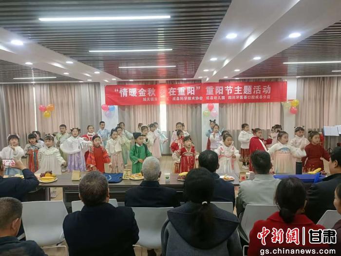 中新网甘肃新闻10月29日电 (李婷)在重阳节来临之际,为弘扬敬老爱老传统,扎实推进“一老一小”工作,10月28日,陇南市成县南街社区联合县科协、县幼儿园、四川牙医荟口腔医院等多家共建单位,在社区活动室举办“情暖金秋爱在重阳”主题活动。