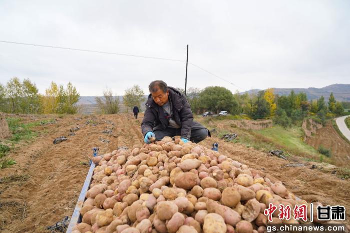 中新网甘肃新闻11月21日电(路淑娟 张顿栋)时下,甘肃天水市秦安县王铺镇文昌流域3000余亩马铃薯基地喜获丰收。通过“连片统种+农户自种”的产业发展模式,这里年产马铃薯约750万斤,预计直接创收220万元。