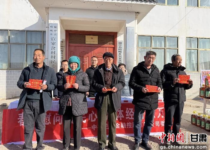中新网甘肃新闻1月26日电 (杜莹莹)农历新年来临之际,榆中县哈岘乡宣家岔村暖意融融。1月23日,由宣家岔村联合兰州市委金融办、市金融控股公司、人保财险兰州市分公司共同举办的“金融知识进乡村,集体经济惠民生,春节慰问暖民心”系列活动举行,为乡村振兴注入温暖动力。