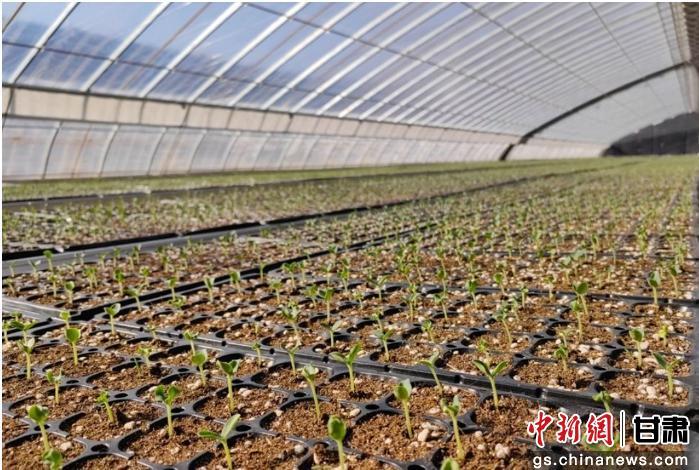 中新网甘肃新闻1月28日电 冬日寒意渐浓,秦安县五营镇蔡河村果蔬育苗中心的大棚内却暖意融融、生机盎然。一排排育苗盘整齐排列,嫩绿的白脆瓜幼苗破土而出、舒展新叶,长势喜人。目前,中心培育的十万余株“星甜24号”白脆瓜苗已全部顺利出芽,为来年全镇白脆瓜规模化种植奠定了坚实的种苗基础。