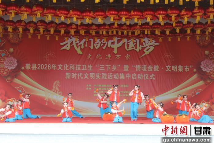 中新网甘肃新闻2月5日电 (燕宏瑞 王倩 孙朋亮)2月3日,陇南市徽县2026年文化科技卫生“三下乡”暨“情暖金徽文明集市”新时代文明实践活动在伏家镇伏镇村文化广场启动。活动以“我们的中国梦—文化进万家”为主题,聚焦农村实际需求与群众所思所盼,进一步丰富群众文化生活,普及推广科技知识,强化农村医疗服务,密切党群干群关系,助推乡村全面振兴,为加快建设“五个新徽县”贡献力量。