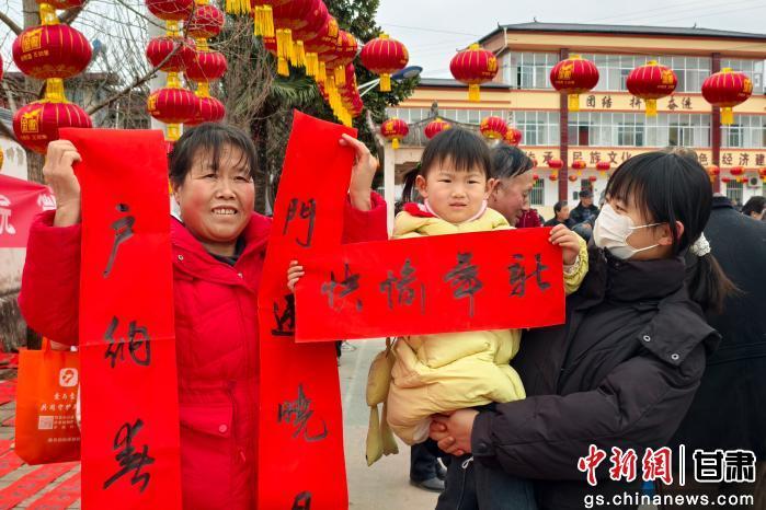 文化服务区同样热闹非凡,书法家们挥毫泼墨、笔走龙蛇,一幅幅寓意吉祥的春联与“福”字跃然纸上。领到春联的村民小心翼翼捧着墨迹未干的作品,脸上洋溢着幸福的笑容。一旁的流动图书车敞开“书香之门”,少儿绘本、经典名著、农技书籍等各类读物整齐排列,大人小孩静心挑选、细细翻阅,墨香与书香交织弥漫,氤氲出浓浓的新春文化气息。与此同时,“送文化到家”行动也在同步进行,将定制字画与承载徽县本土文化的《青泥岭》杂志送到部分离任村干部、老党员手里,切实把文化关怀与新春祝福送到特殊群体心坎上。