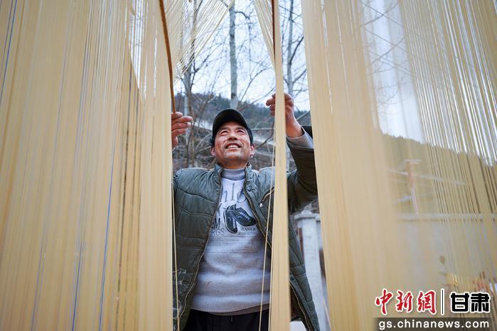中新网甘肃新闻2月10日电 (刘建军 李羽凡)腊月二十三是北方小年,新春的脚步越来越近,年味也愈来愈浓。和面、醒面、盘条、拉条、晾晒……一道道娴熟的工序轮番上演,一根根细如银丝的手工挂面在晨光中垂落,陇南市成县苏元镇张湾村闫永春一家忙碌的身影,成为冬日里最动人的烟火图景,也让马年新春的年味愈发醇厚绵长。