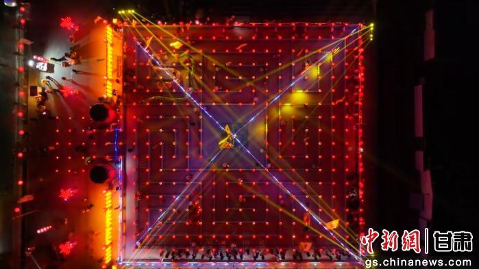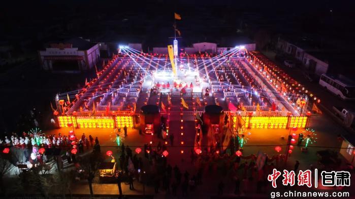 中新网甘肃新闻2月10日电(段海 王健 李渊博)农历腊月二十二晚,甘肃省张掖市高台县黑泉镇镇江村非物质文化遗产传承基地华光璀璨、人流如织,省级非遗项目“九曲黄河灯阵”启灯仪式在此举行。365盏明灯同步点亮,交织成绚烂的地上星河,以穿越数百年的民俗光芒,叩响丙午新春的大门。