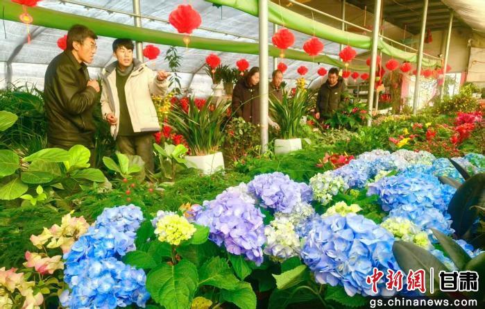 中新网甘肃新闻2月11日电 (高素云)春节临近,武威市凉州区的大街小巷年味渐浓。走进凉州区各大花市,仿佛踏入一个缤纷绚烂的春日花园——蝴蝶兰翩翩如蝶,杜鹃花开得热烈,富贵竹青翠欲滴,金橘树挂满金黄果实。笑语与花香交织,构成了一幅生动的新春画卷。