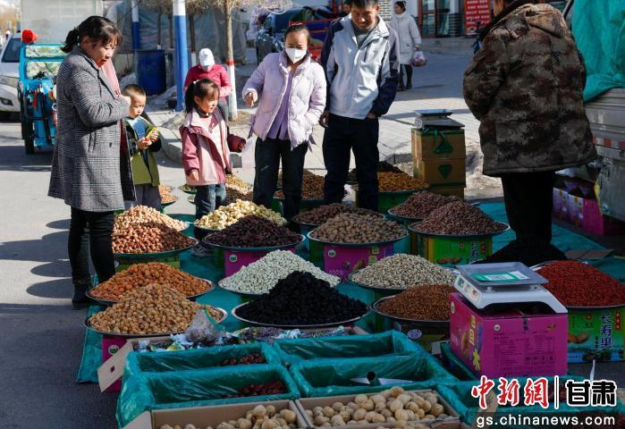中新网甘肃新闻2月12日电 (李雅欣)随着春节的日益临近,在古浪县横梁镇绿洲小镇广场旁的街道上暖意涌动、年味渐浓。这条街道在过年前被划为年货集中售卖的小市场,红彤彤的灯笼春联挂满街巷,香脆的瓜子炒货、新鲜的鲜肉熟食、喜庆的年画福字……氤氲的烟火气中,每一处角落都洋溢着浓浓的新年气息,将“年味”拉得满满当当。