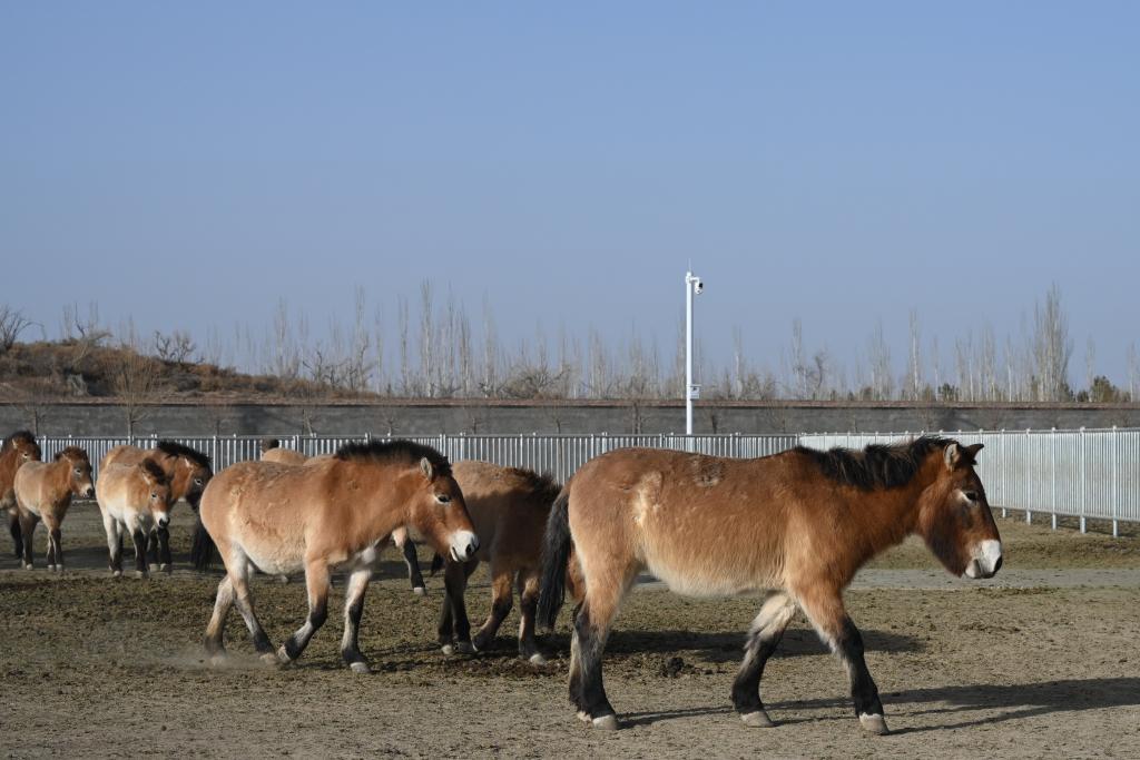 1月27日,记者探访了甘肃濒危动物保护中心为普氏野马搭建的“家园”。1985年,中国启动“野马返乡”计划,先后从英国、德国、美国引进普氏野马进行繁育保护、野化放归。据介绍,2026年马年春晚吉祥物“骋骋”,其设计原型正是拥有6000万年进化史的普氏野马。图为甘肃濒危动物保护中心普氏野马繁育保护基地内的普氏野马。