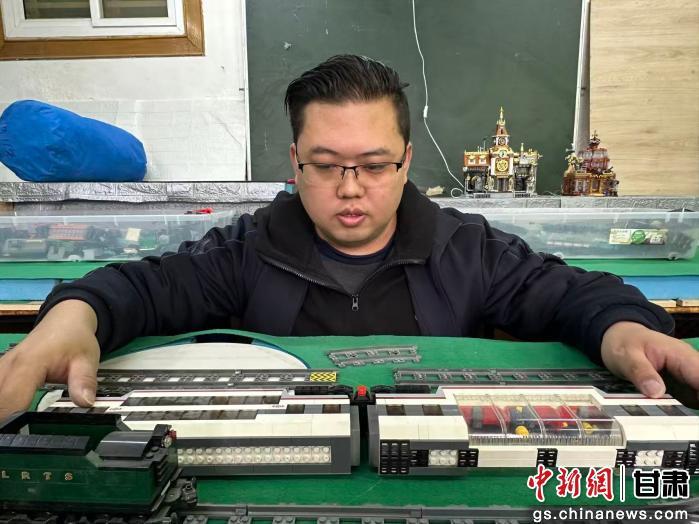 中新网甘肃新闻2月19日电 (戴文昌)19日,兰州铁路局兰州供电段白银西电力工区职工陈东翔结束春运值守,在工作室里巧手翻飞。方寸积木间,他用铁路人的坚守与热爱,拼搭成灵动小火车与逼真铁路作业设备,每一块彩色颗粒里,都藏着积木与钢轨间独有的铁路情怀。
