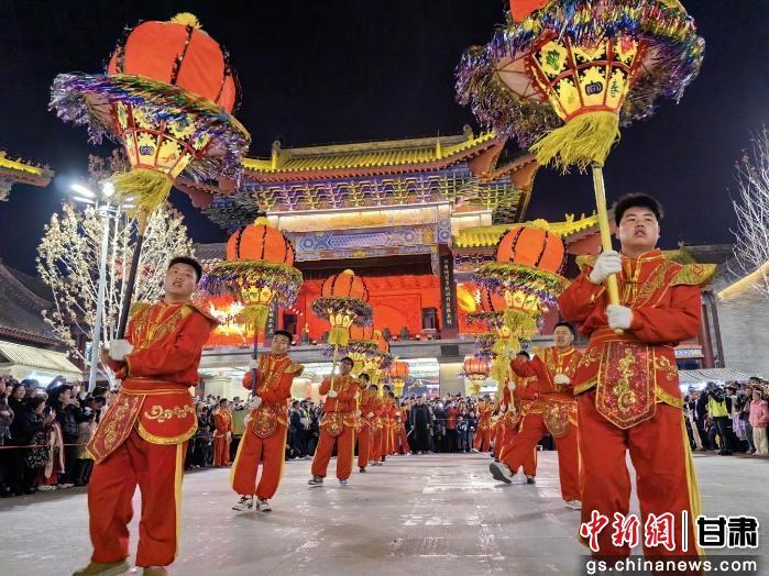 当非遗从展演台走进日常,文化传承便有了更具象的载体。莲峰高烨社火凭借独特的艺术魅力,从山乡走向都市,从线下演变为线上热点,成为这个春节最具辨识度的文化符号之一。在兰州老街的古街长巷,来自渭源县莲峰镇的高烨社火队伍,身着传统彩服,手持竹扎纸糊高烨灯,火光闪烁,灯影流转。头顶的高烨灯如盛开的矩形莲花,在鼓点的节奏中翩然舞动,为省城市民送去渭水源头的独特新春祝福。