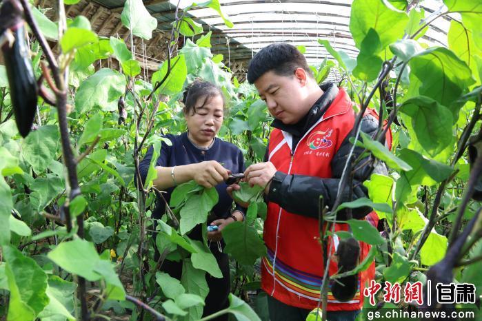 中新网甘肃新闻3月2日电 (程莉 尹丽娟 贾霄)近日,走进张掖市临泽县蓼泉镇双泉村蔬菜种植户王爱玲家的温室大棚内,暖意扑面而来,紫色的长茄挂满枝蔓,长势喜人。王爱玲正在垄间,仔细查看叶子背面的虫情。此时恰逢临泽县农业技术推广中心工作人员上门回访,工作人员俯身查看植株后,又给种植户王爱玲讲解了下一步生物防治的要点。