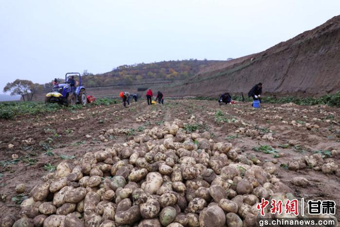 中新网甘肃新闻10月30日电(郭海霞)金秋时节,庆阳市环县北部山区田野间丰收气息扑面而来。30万亩马铃薯进入集中采挖期,从南湫乡千亩标准化示范田到芦家湾乡丘陵梯田,农机穿梭、农户忙碌。