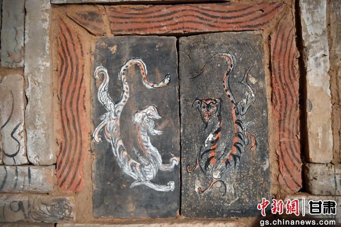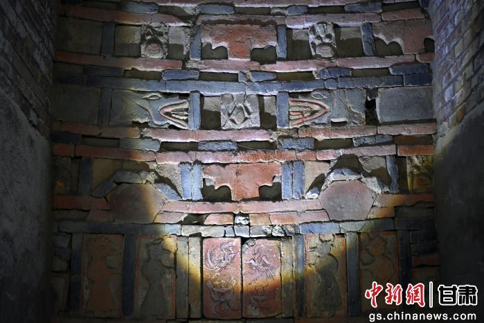 图为甘肃张掖市高台县魏晋壁画墓内的羽人神兽图壁画砖。九美旦增 摄
