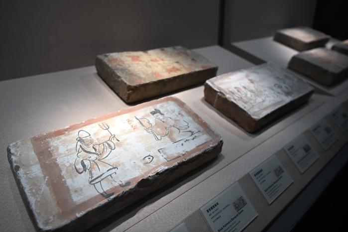 图为在甘肃张掖市高台县博物馆内展出的宴饮图壁画砖。九美旦增 摄