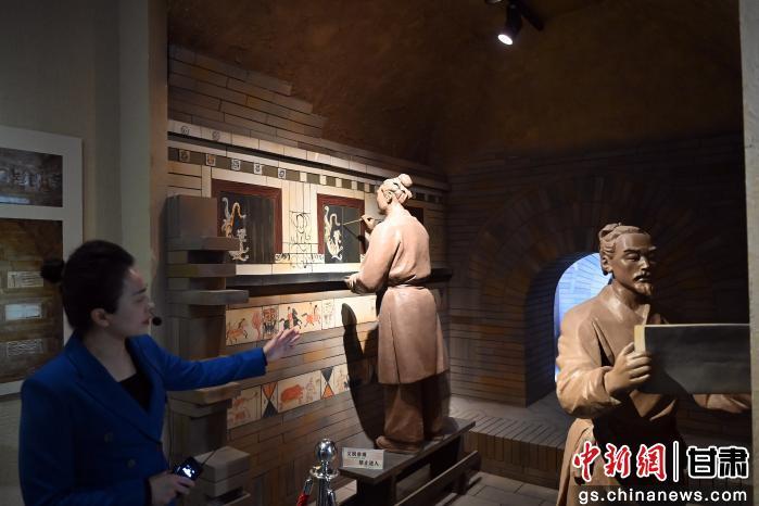 图为在甘肃张掖市高台县博物馆内,工作人员介绍复原后的魏晋时期墓葬建设场景。九美旦增 摄