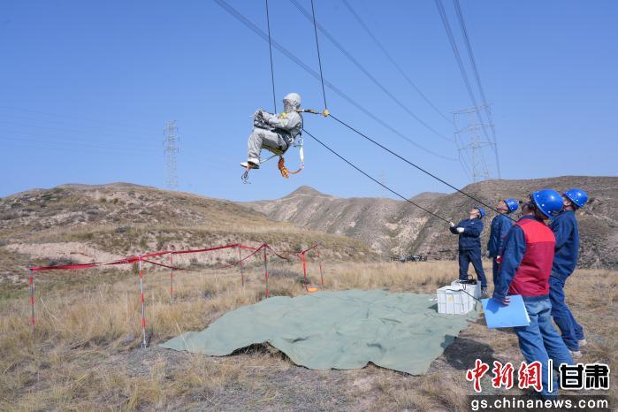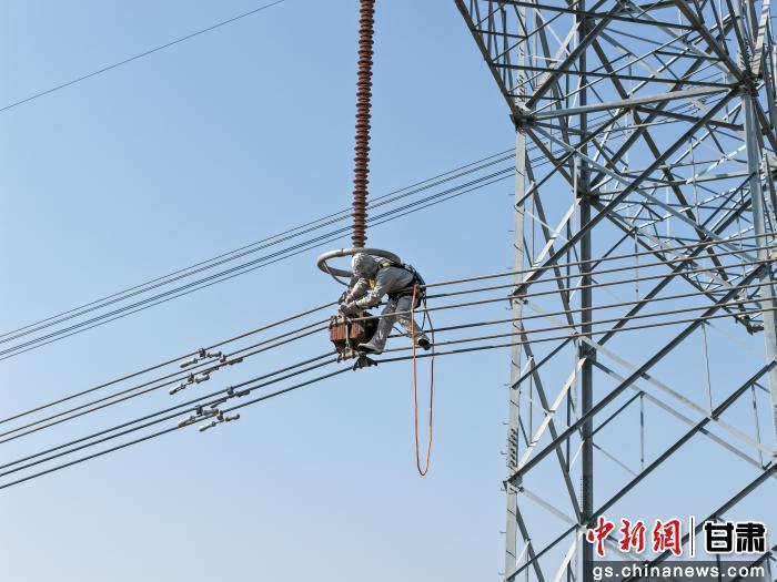 中新网甘肃新闻11月3日电 (王辉 张子墨)10月31日,在甘肃省兰州市红古区海石湾镇,国网甘肃超高压公司在750千伏郭武Ⅱ线同塔双回中相首次采用“小飞人”工法开展等电位带电作业,成功补装750千伏郭武Ⅱ线146号中相连接螺栓开口销,填补了国内750千伏同塔双回线路中、上相带电作业的技术空白,为全国带电作业提供技术支撑,标志着超特高压电网带电作业全面进入机械化、智能化的时代。