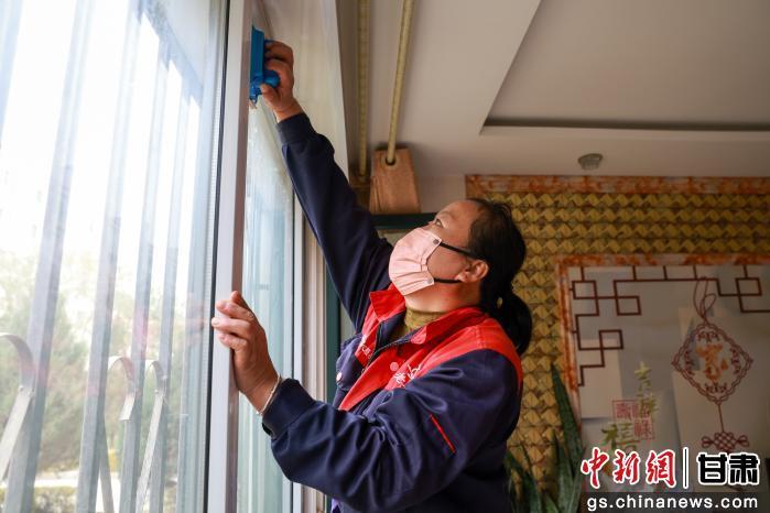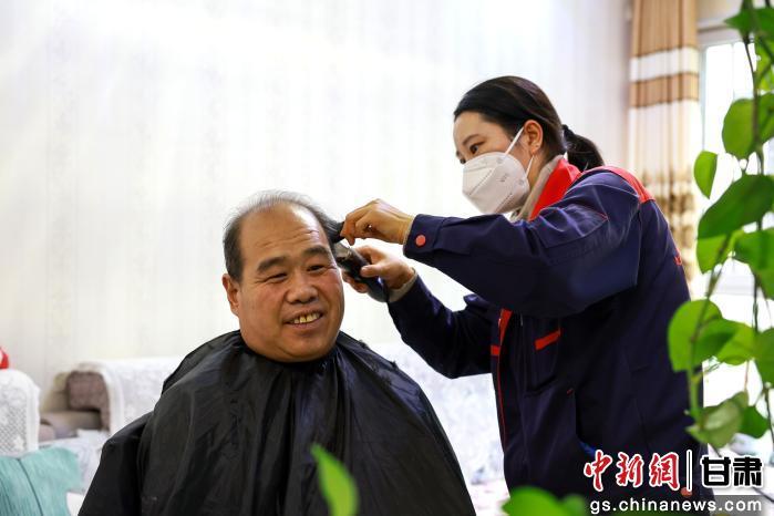 11月5日,甘肃省酒泉市金塔县老来乐居家养老服务有限公司的工作人员走进社区分散供养特困人员家中,提供卫生打扫、衣物换洗、理发等贴心生活照料服务。