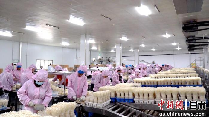 中新网甘肃新闻12月5日电 (赵彦洲 田建鑫)时下,临洮雪榕生物科技有限责任公司的食用菌迎来销售旺季。走进加工车间,工人们正忙着分拣、包装新鲜采收的食用菌,一派热火朝天的加工景象。