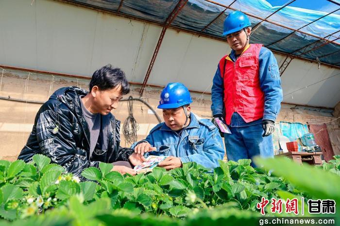 中新网甘肃新闻12月11日电 (张卓卓)初冬暖阳洒满庆阳市庆城县玄马镇草莓种植基地,一座座日光温室大棚错落有致,棚内绿意盎然,饱满鲜红的草莓缀满藤蔓,果香四溢,种植户穿梭棚间采摘分拣,游客驻足体验采摘乐趣,欢声笑语里满是丰收的喜悦。当天,国网庆阳供电公司工作人员走进基地,开展冬日用电安全专项检查,为这份“甜蜜产业”的稳产丰产筑牢电力屏障。