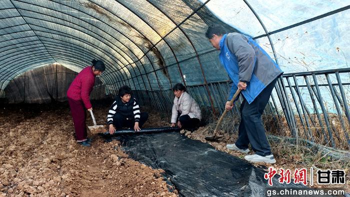 中新网甘肃新闻12月16日电 (何方 王倩)冬日徽县乡村,寒意渐浓却挡不住农业生产的火热势头。在榆树乡剡坝村菌瓜轮作基地,一排排黑色大棚整齐排布,棚内村民们分工协作,翻土、起垄、点种、覆膜、浇水等工序有条不紊,一颗颗羊肚菌菌种被精心埋入菌床,在湿润土壤中孕育着增收希望。