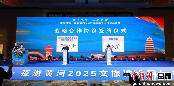 中新网甘肃新闻12月24日电 12月23日,“黄河之畔·文旅共行”水墨丹霞·夜游黄河2025文旅携手同行感恩盛典举行。本次活动由兰州文化旅游产业发展集团有限公司、兰州水运集团有限公司主办,兰州树屏丹霞景区开发有限公司承办。省市县文旅主管部门、行业协会、新闻媒体及旅行社代表和商户伙伴近300人齐聚一堂,共话合作,共谋发展。