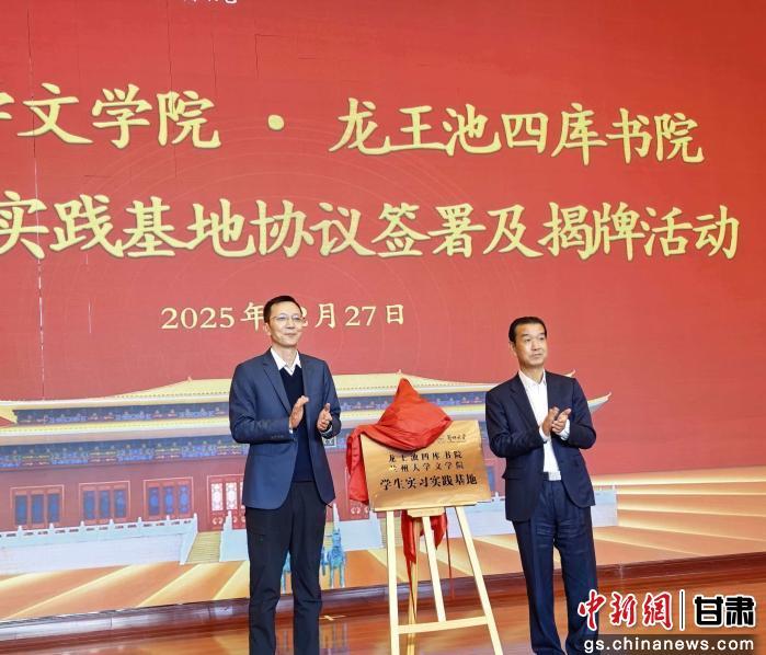 中新网甘肃新闻12月27日电 兰州大学文学院与龙王池四库书院共建学生实习实践基地协议签署及揭牌活动27日在永登县龙王池四库书院礼乐殿堂举行。此举标志着双方在推动中华优秀传统文化传承创新、深化院企协作、构建产学研一体化育人平台方面迈出实质性步伐。