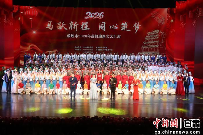 12月29日晚,由敦煌市干部职工全程参演的“辞旧迎新·同心筑梦”2026年庆元旦文艺演出活动在敦煌大剧院举办,演出现场座无虚席,精彩节目引得观众连连拍手称赞,为新一年的发展奏响了奋进序曲。 张文瑾 摄