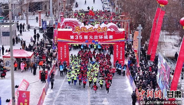 中新网甘肃新闻1月6日电(张敏凤)元旦佳节,瑞雪纷飞的临泽县文化体育广场暖意融融,1200余名运动员齐聚于此,共同见证“奔跑吧·临泽”第35届元旦环城赛鸣枪开赛。银装素裹的街道上,跃动的奔跑身影成为新年最动人的注脚;铿锵有力的脚步声中,临泽向新而行的宣言响彻戈壁。2026年,奔向临泽,正当其时。