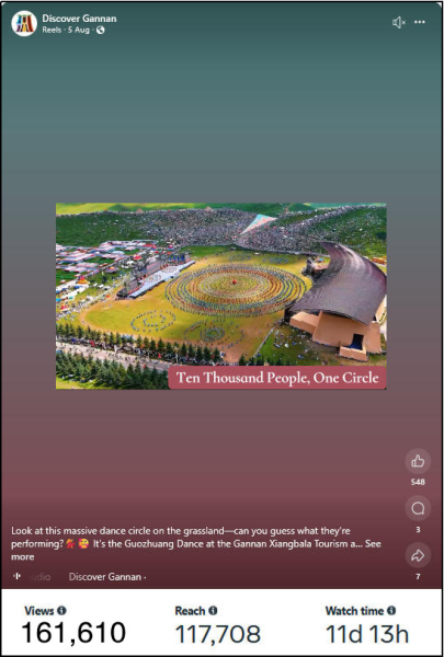 中心响应联合国《2030年可持续发展议程》与《新城市议程》中关于文化多样性对可持续发展重要性的号召,应邀参与相关主题传播,发布《寻迹八角城遗址》视频并与南京等城市账号积极互动,实现文化遗产内容的跨区域共振。用“抱团取暖”的传播模式提升甘南内容的覆盖面,强化中国城市机构在海外平台的联合发声能力。一年间,北京、云南、江苏等超30个百万级机构账号主动为甘南点赞,多家国内机构账号积极关注,甘南国际传播中心已逐步融入全国地方国际传播的“第一方阵”。