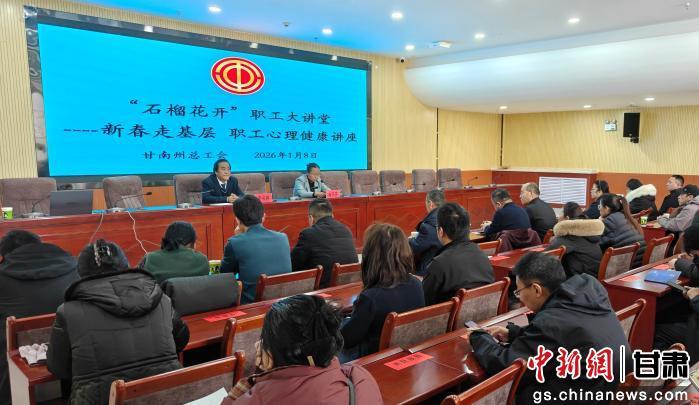 中新网甘肃新闻1月10日电 近日,甘南州总工会组织“石榴花开”职工大讲堂新春走基层职工心理健康首场讲座在州工人文化宫举办。州直及县(市)120余名基层工会工作者及职工代表齐聚一堂,开启了一场温暖实用的心灵赋能之旅。