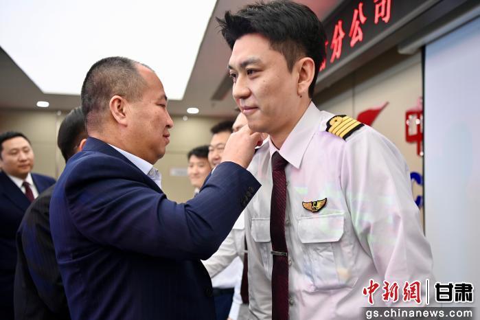 中新网甘肃新闻1月13日电(于敏)1月12日,东航甘肃分公司举行2025年度新机长聘用仪式。分公司党委书记刘坤强、总经理王彤、副总经理安全武出席仪式,7名新晋机长及家属齐聚现场,与台下的飞行员共同见证这一荣耀时刻。