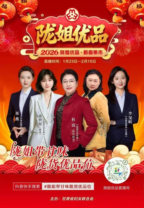中新网甘肃新闻1月22日电(刘可)1月23日(腊月初五)至2月10日(小年),由甘肃省妇联主办的2026年“陇姐带甘味·陇货优品位”陇姐优品新春集市将连续19天不间断在全省14个市州、兰州新区多个直播间同步开播、全域联动。本地特色甘味、非遗手作轮番登场,消费者可一站式购齐年货。
