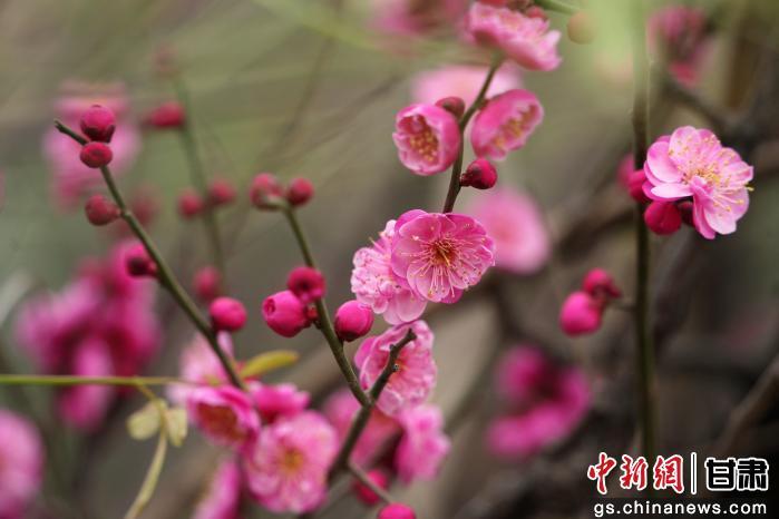 2月上旬,陇南市武都区5·12公园、湿地公园等城市公园内,腊梅迎着寒意在枝头次第绽放,成为冬日里一道别样景致。玫红的花瓣缀满虬枝,在晴日暖阳下显得格外清丽,冷冽的暗香随风浮动,沁人心脾,吸引不少市民走出家门赏梅打卡。胡本平 摄