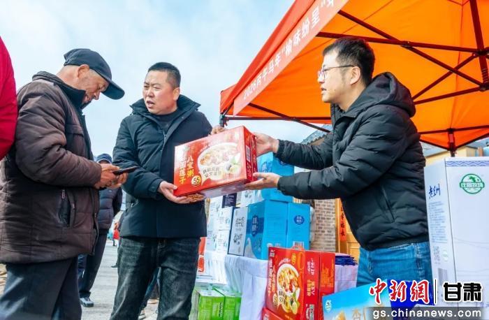 活动现场,五大特色服务区同步开放,成为群众争相参与的“打卡地”。“书香年味”文化体验区里,精品图书、年俗读物整齐陈列,剪纸、九九消寒图等非遗项目展示引人驻足,马年生肖文化图片让群众在触摸传统中感受年俗魅力;“榆味纷呈”年货展销区热闹非凡,兰州百合、特色牛羊肉等本地农副产品琳琅满目,“线下体验、线上下单”的电商联动模式,既让村民足不出村就能采购到优质年货,也为本地农产品拓宽了销路;“温暖瞬间”互动打卡区的新春主题背景墙前,老少咸宜的拍照场景定格下一张张幸福笑脸,传递着团圆喜乐的节日氛围。