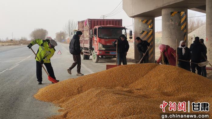 中新网甘肃新闻2月10日电 (冯兴鹏 张万奇)2月9日11时许,武威市古浪县公安局交管大队大靖中队民警在省道308线开展日常巡逻时,发现一辆满载玉米的货车停靠在路中央,大量玉米粒散落路面,不仅影响道路正常通行,更因该路段车流量较大,形成重大道路交通安全隐患。