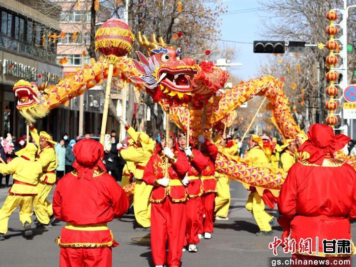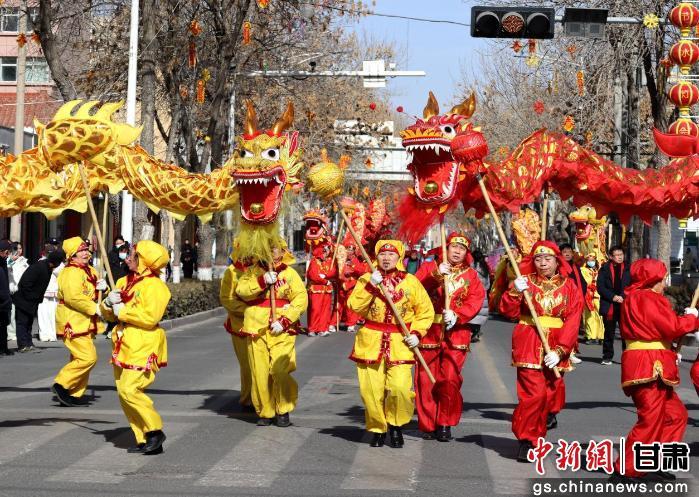 中新网甘肃新闻3月3日电 (聂兵远 富承璘 许洁)锣鼓喧天辞旧岁,非遗焕彩贺新春。春节期间,一场场饱含乡土情怀的民俗盛宴在甘肃省民勤县城乡轮番上演,省级非物质文化遗产——民勤社火盛装亮相。舞龙舞狮气势昂扬,秧歌旱船灵动诙谐,高跷舞步铿锵有力,传统民俗与新春佳节交相辉映,让民勤年味更浓、更足、更暖心。