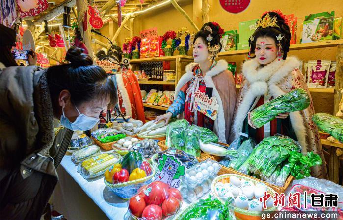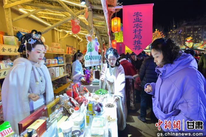 中新网甘肃新闻3月3日电 (王斌银 唐小艳)3月1日至3月3日,由甘肃敦煌市农业农村局牵头组织的“灯耀敦煌·丝路甘味”敦煌元宵灯会特色农产品展销活动在敦煌大集持续进行。