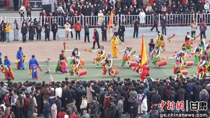 中新网甘肃新闻3月3日电 鼓点铿锵贺新岁,非遗社火润金城。近日,兰州市永登县2026年“欢欢喜喜过大年”社火进城展演热闹启幕,滨河大道至全民健身中心沿线锣鼓喧天、人声鼎沸。来自全县各乡镇的社火队伍齐聚一堂、各展绝活,用最具烟火气的民俗盛宴,为城乡群众送上马年新春的美好祝福,也让千年非遗在欢声笑语中焕发新生。