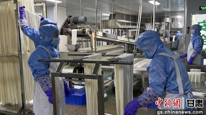 走进甘肃世邦星达生物科技有限公司的宽粉生产车间,高速运转的流水线映入眼帘,工人来回忙碌,生产井然有序,包装好的“渭鲜牌”定西宽粉整齐码放,即将发往全国各地。