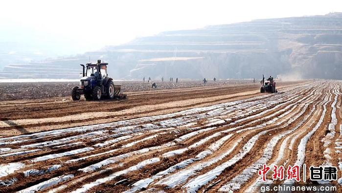 中新网甘肃新闻3月11日电 (姚瑜)春回大地,农时渐紧。眼下正值顶凌覆膜的黄金窗口期,为抢抓土壤解冻的有利时机,牢牢锁住土壤墒情,为全年农业丰产丰收筑牢基础,3月10日,定西市安定区农技中心组织技术骨干走进西巩驿镇铧尖村,现场指导农户开展顶凌覆膜作业,田间地头一派热火朝天的备耕景象。