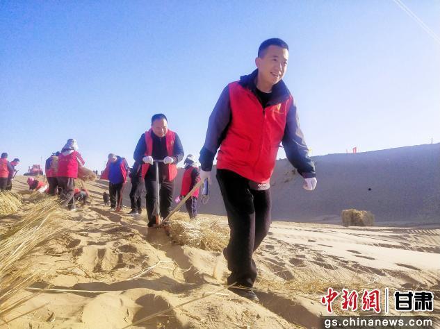 中新网甘肃新闻3月11日电 (马艳 苏玉梅)3月9日,武威市凉州区2026年春季义务压沙活动全面启动。来自全区58个单位、3944名干部职工迎着春光,挺进沙海,以担当守护绿水青山,用实干筑牢生态屏障,生动诠释“困难面前不低头、敢把沙漠变绿洲”的新时代武威精神。