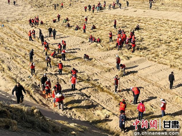 随着一支支“志愿红”在连绵起伏的沙丘中挺进,“田”字形沙障绘织的巨大草方格“金网”,紧紧缚住了大漠“黄龙”。此次义务压沙,既是一次生态文明建设的生动实践,也是一次锤炼作风、凝聚合力的志愿行动。