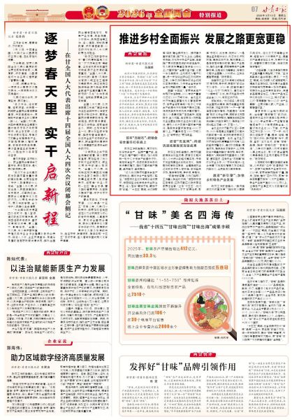 从定西的马铃薯到陇南的油橄榄,从平凉的“红牛”到酒泉的“种子”,陇原大地特色产业百花齐放。2026年,甘肃将接续推进“扩量、提质、延链、增效”四大行动,聚焦“牛羊菜果薯药粮种”八大产业集群,力争全产业链产值达6500亿元以上,让特色产业真正成为农民增收的“绿色银行”。