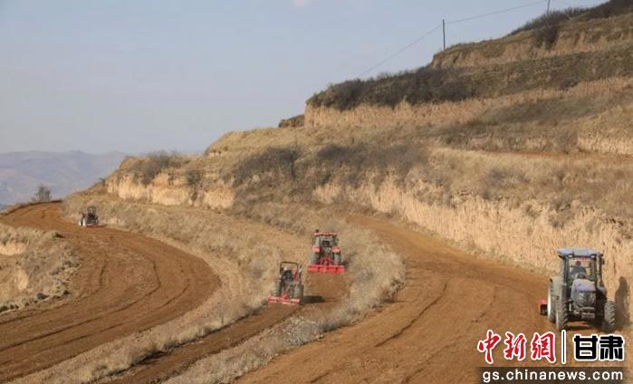 在陇城镇张赵大曳山区域,农机轰鸣,多台农业机械在田间来回作业,对土地进行翻耕和整理。“今年在陇城镇流转土地4000亩左右,准备种植玉米,现在正处于翻地阶段,下一步进行平整、施肥、覆膜、点播,计划在50天之内完成种植。”甘肃续德中药材有限公司负责人赵续德介绍说。