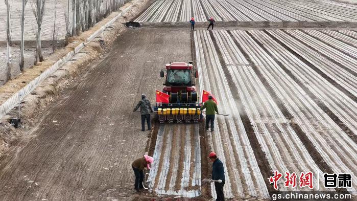 中新网甘肃新闻3月16日电 (张蓉 马万旭)春回大地,农事正忙。随着气温逐渐回升、土壤解冻,眼下,瓜州县3.8万亩孜然套种全面开播,田间地头农机轰鸣、农户忙碌,农技人员全程护航,一幅抢抓农时、奋力耕耘的早春播种画卷徐徐铺展。