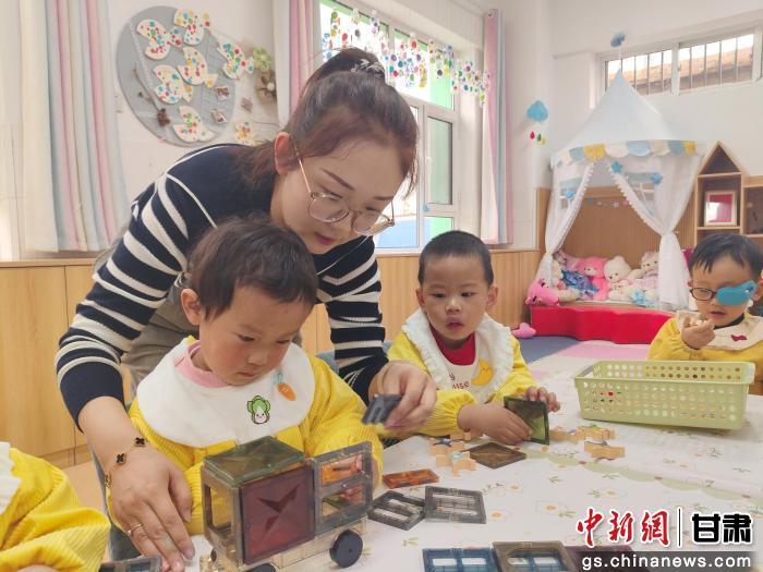 “我们针对托育班孩子的特点,把日常照料融入到教学中,用温柔互动让孩子们在快乐中成长;在生活上,手把手教孩子自己喝水、如厕、穿脱衣服,培养基本的生活自理能力;在游戏中融入认知、动作发展的启蒙,通过绘本、儿歌、感统游戏,让孩子在玩中学,在学中玩,让孩子们在幼儿园都能开开心心的。”古浪县幼儿园托育班老师王晓丽说。