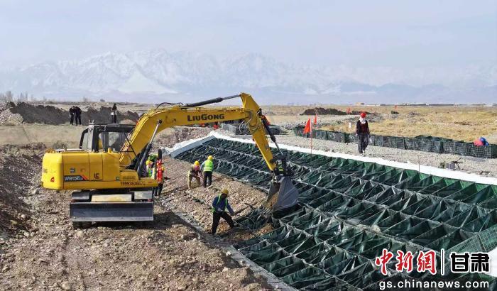 近日,在张掖市民乐县大堵麻河防洪治理工程项目施工现场,工人们正在紧张有序的修筑河堤。据悉,作为保障区域防洪安全、改善流域生态环境的重点水利工程,民乐县大堵麻河防洪治理工程全长9.74公里,新建防洪护岸9.84公里,建成后可有效保护沿岸群众和耕地的生命财产安全,进一步完善区域防洪减灾体系,实现“堤固、河畅、岸绿、水清”的生态治理目标。(王晓泾 杨玉红)