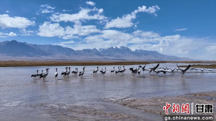 “2025年,我们精准记录黑颈鹤巢位55处,全面摸清了区域内黑颈鹤繁殖栖息底数。同时,组织专业技术人员,完成了越冬水鸟同步监测任务。监测记录到黑颈鹤329只,较上年增加48只,种群数量再创历史新高,保护区湿地生态环境持续向好。”甘肃盐池湾国家级自然保护区管护中心盐池湾保护站副站长赛西雅力图说。